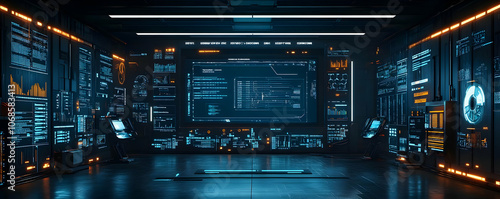 Obraz premium 3D Illustration Futuristic Data Center, Server Room, Technology, Network, Big...