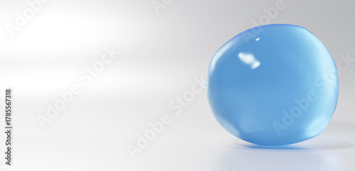 © nanako, Fototapeta premium 3D Illustration.Light blue liquid in a circle on a white background. Water droplets. Gel. Copy space. (Horizontal)