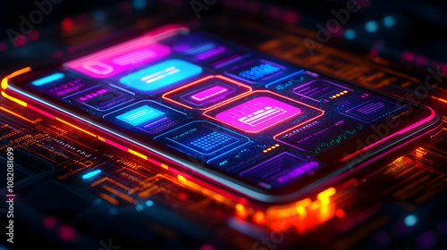 Fototapeta premium 3D Illustration Neon Smartphone Technology Data Circuit