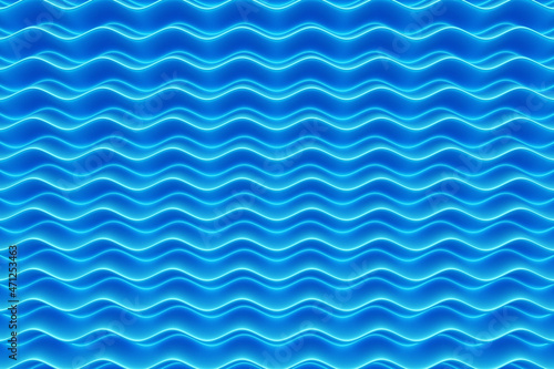 © Виталий Сова, Obraz premium 3d illustration of a classic blue abstract gradient background with lines. PRint from the waves. Modern graphic texture. Geometric pattern.