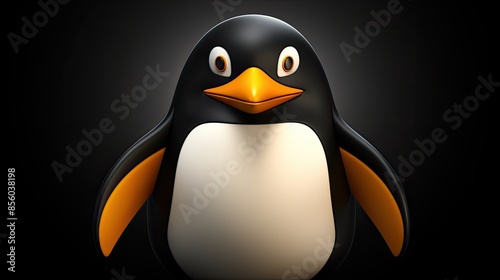 Fototapeta premium 3D illustration of a cute penguin with bright orange beak and feet. It has a...