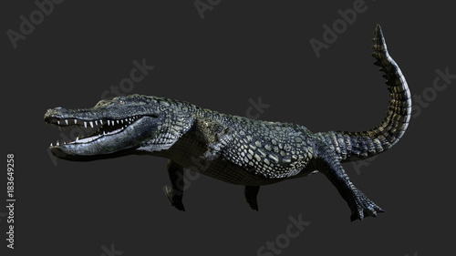 © mrjo_7, Naklejka premium 3D Illustration of a green American alligator isolated on grey background, American crocodile.