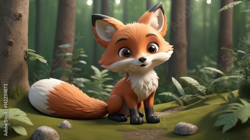 © Gilang, Fototapeta premium 3D illustration of a red fox in the forest