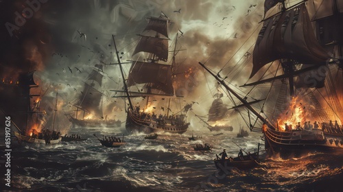 © Ibad, Naklejka premium 3D Illustration of a sea battle pirate ship