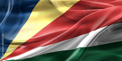 © Michael, Naklejka premium 3D-Illustration of a Seychelles flag - realistic waving fabric flag