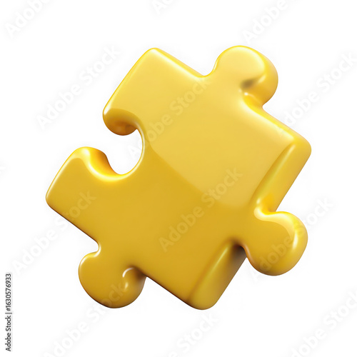 © Png Stock25, Obraz premium 3d illustration of a single yellow puzzle piece represents connection solution and problem solving in a bright and modern 3d illustration isolated on transparent background