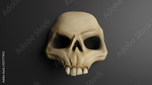 © Ricardo, Obraz premium 3d illustration of a skull on a dark background. Dark skeleton. Black skull.