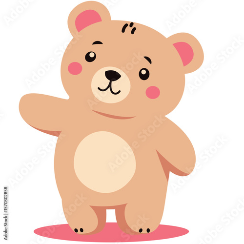 Fototapeta premium 2D illustration of a smiling teddy bear standing and waving hand, perfect for kids’ graphics, children’s books, or cute cartoon designs.