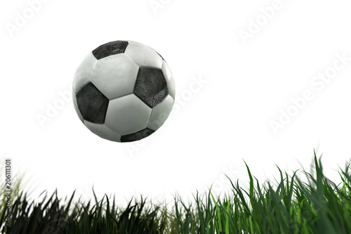 Obraz premium 3D Illustration of a soccer ball on grass on white background