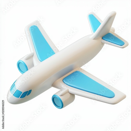 © STOCKYE STUDIO, Fototapeta premium 3D illustration of a toy airplane with white body, blue accents, simple design, playful, and minimal aesthetic for aviation theme.