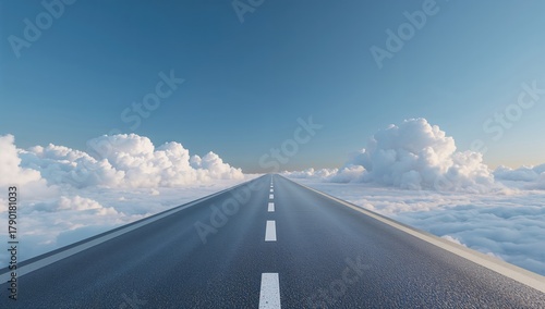 © The 2R Artificiality, Obraz premium 3D illustration of an infinite road with clouds, potential for creative design applications