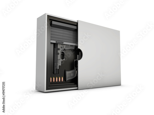 Fototapeta premium 3d Illustration of Black Guns in a box, Gunbox concept isolated white