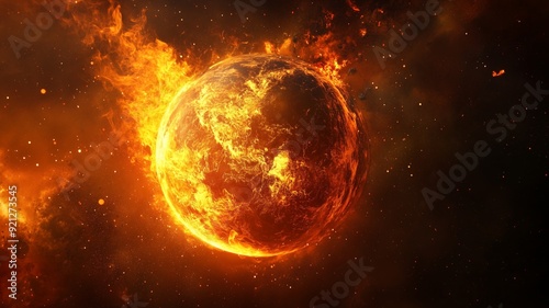Obraz premium 3D illustration of burning planet. High quality digital space in 5K ,...