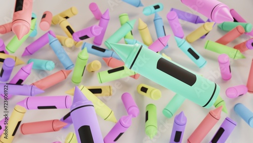 © pudddel, Naklejka premium 3D illustration of colorful crayons falling to the ground on white background