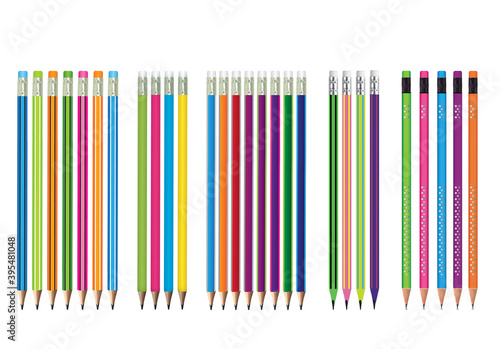 © Tijana, Obraz premium 3d illustration of different graphite pencils with eraser on the top in frontal position and realistic preview on white background