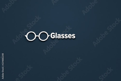 Obraz premium 3D illustration of Glasses, light color and light text with blue background.