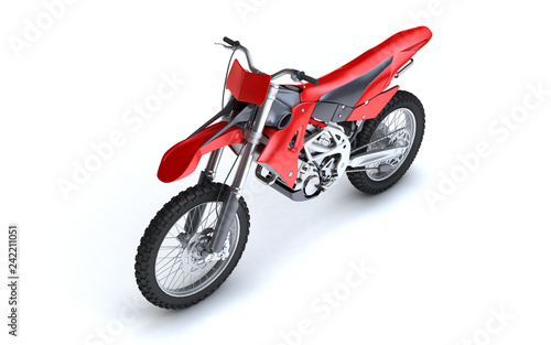 Fototapeta premium 3D illustration of red glossy sports motorcycle isolated on white background. Perspective. Front side view. High angle view. Left side
