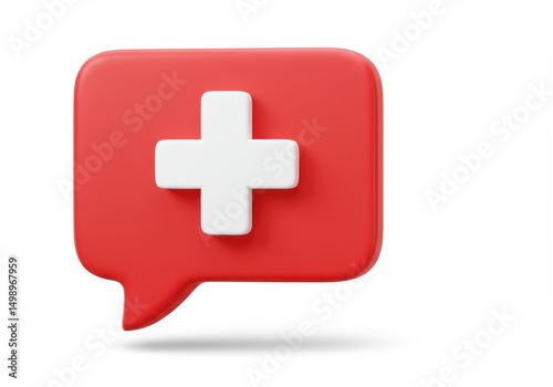 © PixelPulse Creative, Obraz premium 3D Illustration of Red speech bubble with white cross isolated on white background