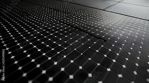 © Photo Dogg, Obraz premium 3D Illustration of Shiny Black Solar Panels Pattern with Metallic Cubes for Technology Wallpaper