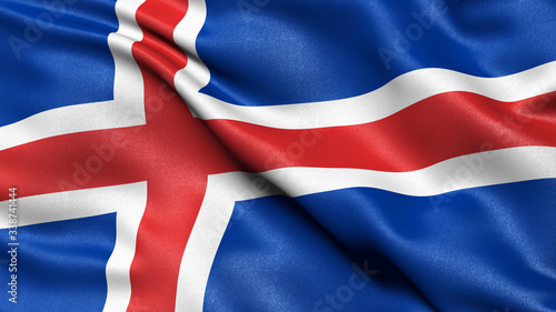 Fototapeta premium 3D illustration of the flag of Iceland waving in the wind.