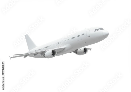 © stock.metket.com, Fototapeta premium 3D Illustration of White passenger airplane in flight isolated on white background