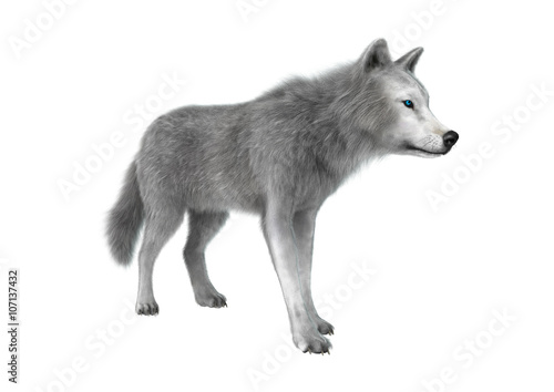 © photosvac, Obraz premium 3D Illustration Polar Wolf on White