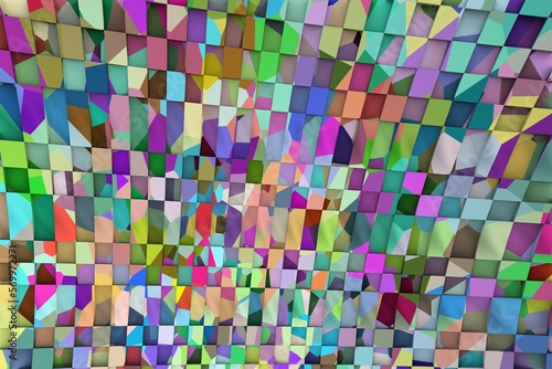© Setthasith, Fototapeta premium 3D ILLUSTRATION RENDERING. ABSTRACT BACKGROUND SQUARE PATTERN DIMENSION OBJECT TRENDY COLORFUL GEOMETRY DISTORTED EFFECT GRAPHIC TEXTURE. PERSPECTIVE SCIENCE TECHNOLOGY PRESENTATION RANDOM DESIGN.