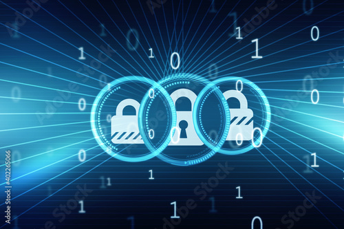 © deepagopi2011, Fototapeta premium 2d illustration Safety concept: Closed Padlock on digital background