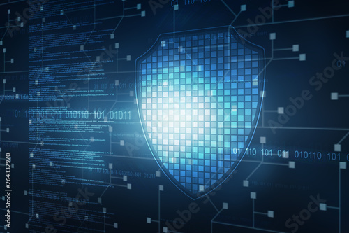 © meenkulathiamma, Obraz premium 2d illustration Security concept - shield on digital code background