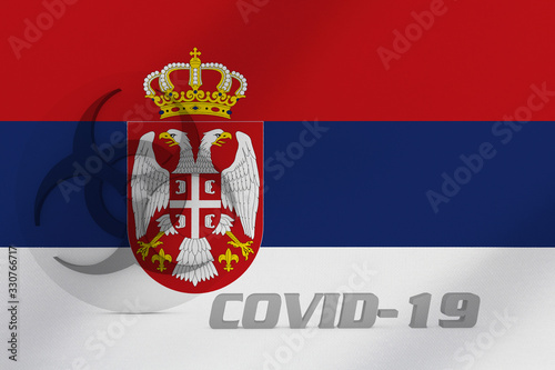 Obraz premium 3D ILLUSTRATION VIRUS, BIOHAZARD SYMBOL CORONAVIRUS WITH Serbia FLAG, Flu...