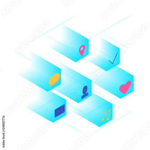 © Ekaterina Chudakova, Obraz premium 3d illustration with isometric social icons for marketing design