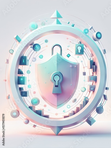 Fototapeta premium 3d illustration with lock and shield, security concept, digital background,...