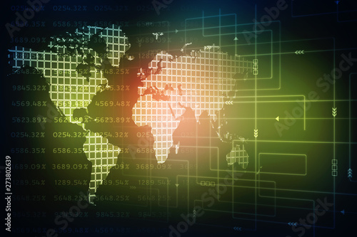 © meenkulathiamma, Obraz premium 2d illustration world map abstract background