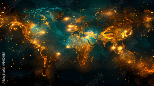 Fototapeta premium 2d illustration world map abstract background.Global network connection....