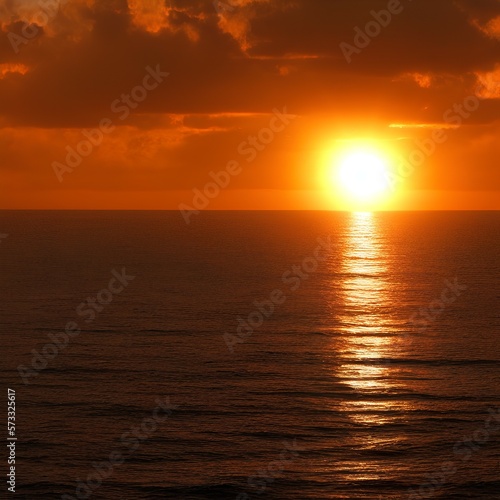 Naklejka premium 3d image of sun behind the sea - generative ai