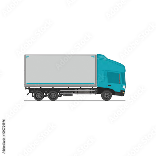 Fototapeta premium 3D Isometric Cargo Truck Half Tone Vector Illustration Modern CyanCabine and White Van Intercity Delivery Vehicle 6x4Design for Logistics Transport Presentation Social Media Video Promo Right