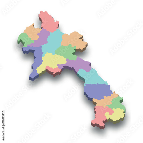 © magr80, Naklejka premium 3d isometric colored map of Laos