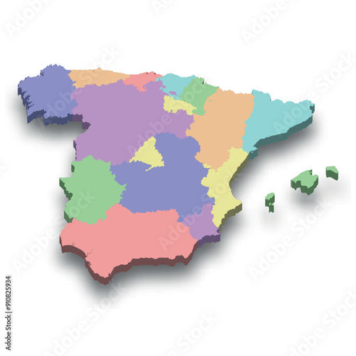 © magr80, Fototapeta premium 3d isometric colored map of Spain