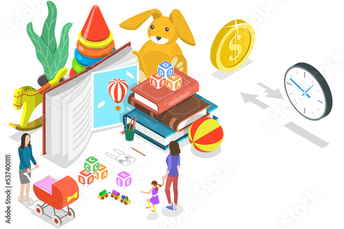 © TarikVision, Naklejka premium 3D Isometric Flat Conceptual Illustration of Babysitting Income.