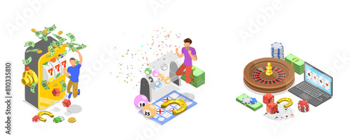 Obraz premium 3D Isometric Flat Illustration of Internet Gambling, Online Casino