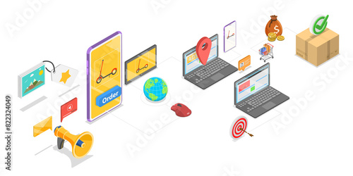 © TarikVision, Fototapeta premium 3D Isometric Flat Illustration of Remarketing, Retargeting Marketing Campaign