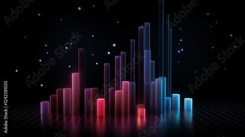 © Naila, Fototapeta premium 3D isometric gradient with glowing vertical light lines, stars, and soft bokeh effect isolated on a black background, minimalist design for digital presentations