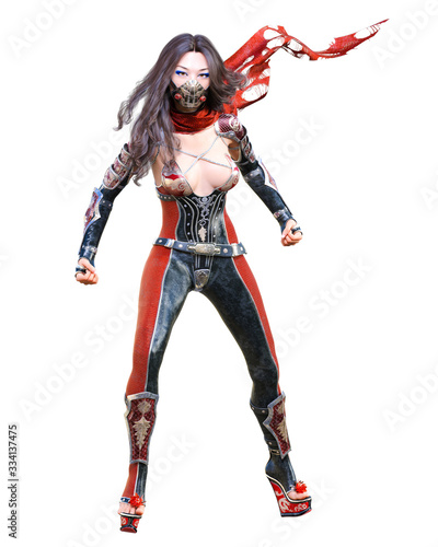 © vladnikon, Fototapeta premium 3D japanese assassin woman render.