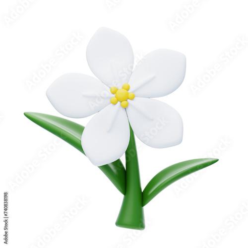 © Unerispace, Naklejka premium 3D Jasmine Cute Fragrant Floral Elegance. 3d illustration, 3d element, 3d rendering. 3d visualization isolated on a transparent background