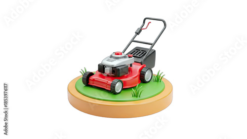 © wahid, Fototapeta premium 3D Lawn Mower on a Round Green Patch