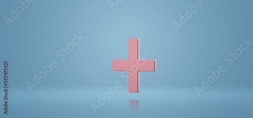 © khamphai, Obraz premium 3d light pink plus sign isolated on blue background with reflection