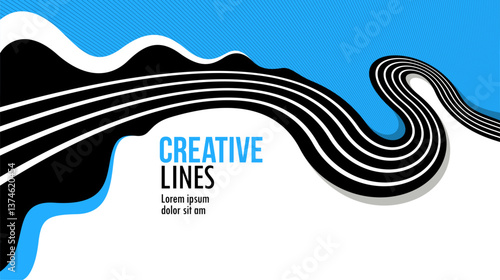 © Sylverarts, Fototapeta premium 3D lines in motion vector abstract background, creative and dimensional curved stripes dynamic composition, motion and technology.
