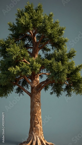 Fototapeta premium 3D low-poly cedar tree with dense, robust structure.