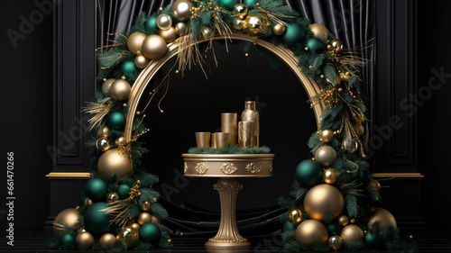 © BoszyArtis, Fototapeta premium 3d luxury podium christmas decoration and space for your luxury product. Christmas background concept. Generative AI.