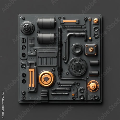© Rjdp, Fototapeta premium 3D Machine Parts Icon: Manufacturing Components Illustration Logo